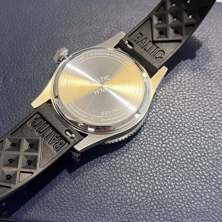 そしてそして、コラボレーションモデルの証である「BALTIC × H°M'S"」のロゴが裏蓋に刻まれています・・