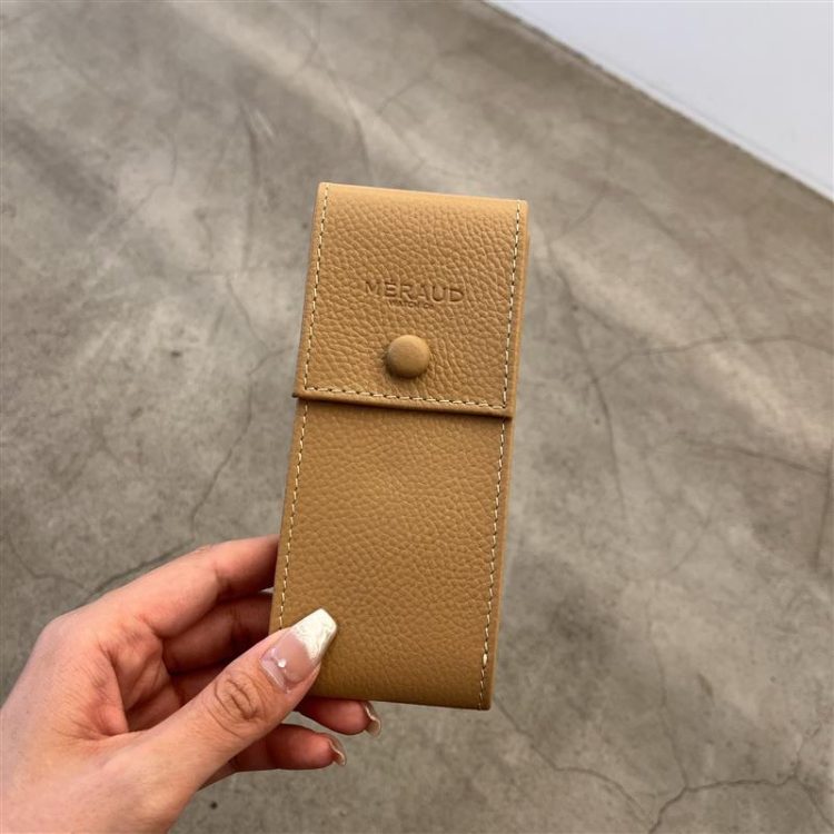 無駄のないシンプルなフォルムに、ロゴの型押しがさりげないアクセントに◎ブランド「MERAUD」の品の良さがにじみ出ていますね~