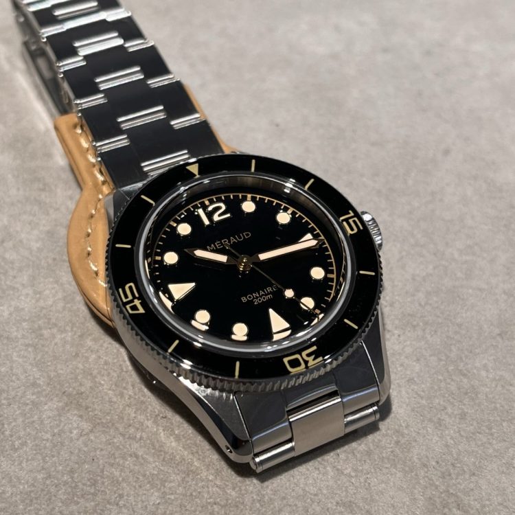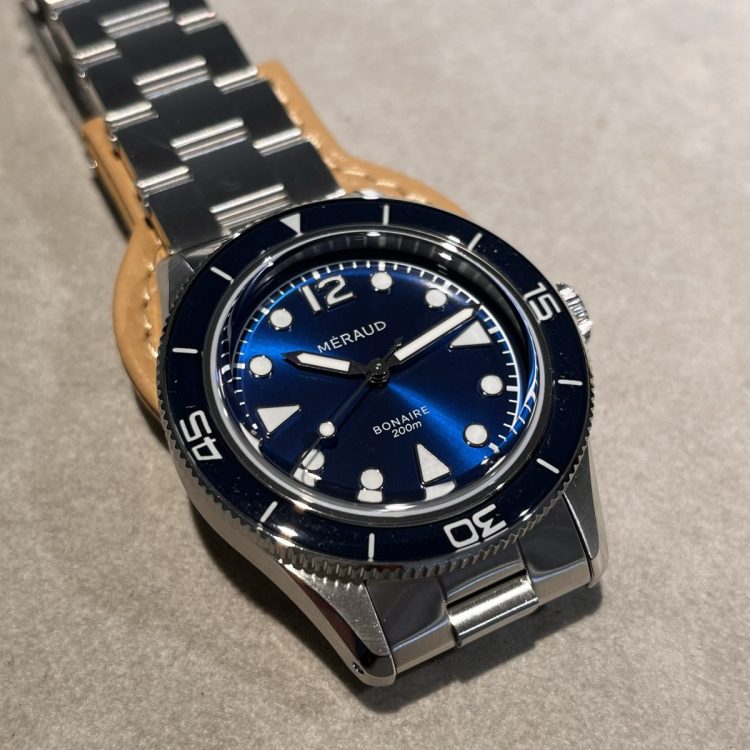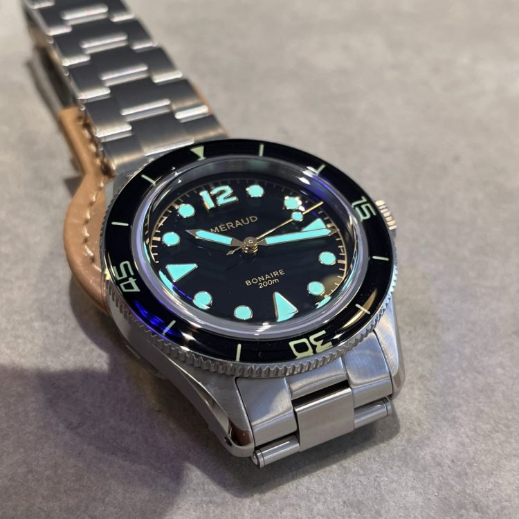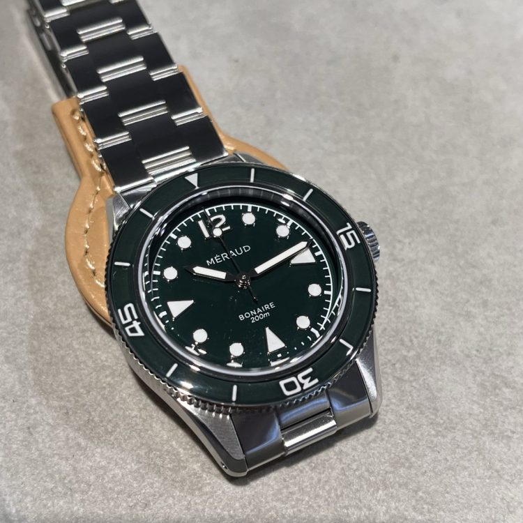 ベルギー・ヘントを拠点とする独立系時計ブランドで、2018年にヴィンテージ時計コレクターでありベルギー・ウォッチクラブの主要メンバーであるStijn Busschaert氏によって設立されました。ブランド名の「Méraud」は、フランス語で「海(mer)」と「エメラルド(émeraude)」を組み合わせた造語で、「海の宝石」を意味し、海への情熱と貴重なものへの敬意を表しています。