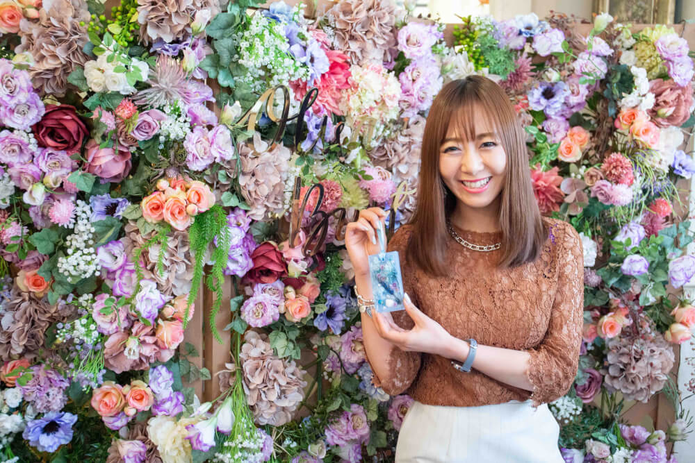 今回の新作は、ブランド初の”海”からインスパイアされた綺麗なブルーのグラデーションや、フォーマザーオブパール(人口パール)が採用されたデザインなので、商品と同じ、ブルーのお花を店内に散りばめさせて頂きました~