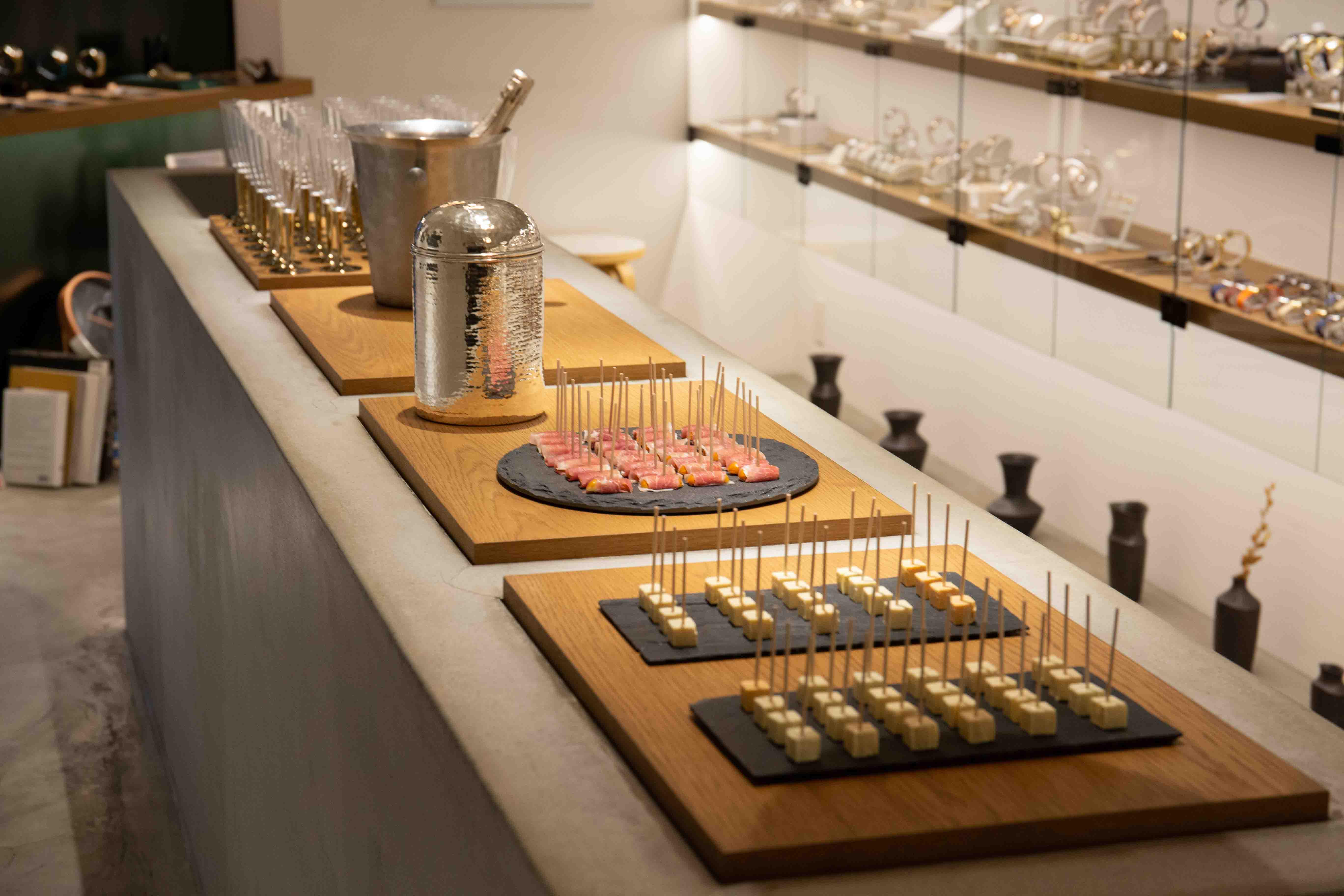 今までクリーンな印象だったHºM'S" WatchStoreが、シックな大人のグリーンに包まれて、