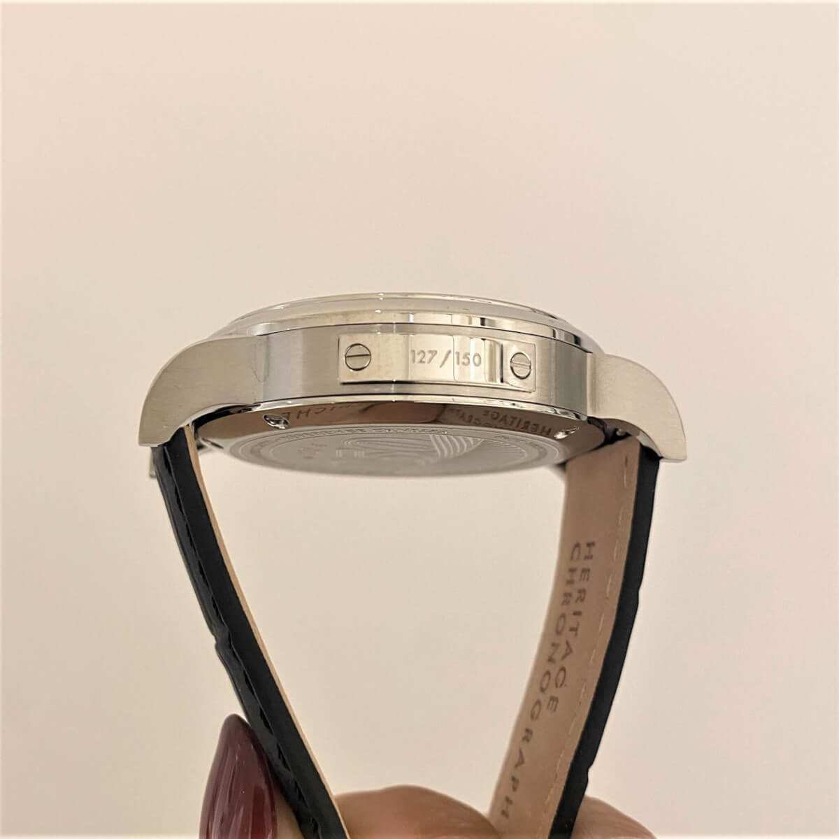 今までのクロノグラフにはなかったアラビア数字のインデックス