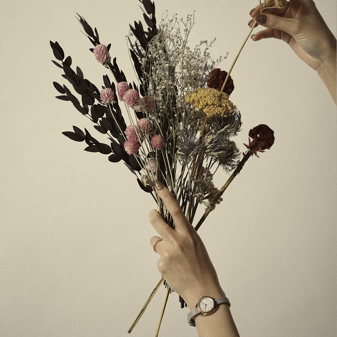 ベルトはそれぞれに季節の花の名前がついていて、花言葉もあります。