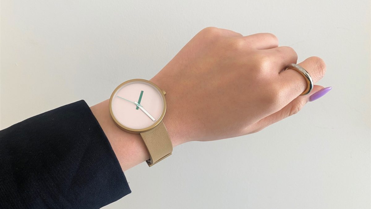 ピンクの文字盤にホワイトとグリーンの針は春にぴったり~!