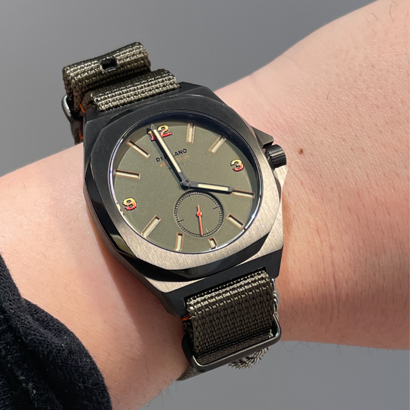 モデルは昨年発売されたコマンドーというシリーズでミリタリー感あふれるカーキのナイロンベルトと八角形のケースが特徴的で防水性も非常に高く薄型なためファッションの1部として活躍してくれること間違いなし!