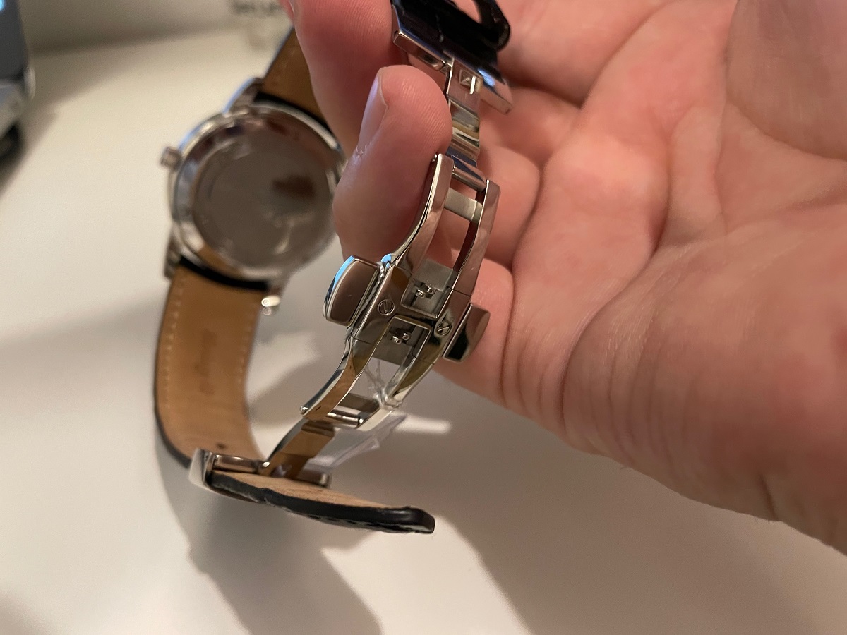 また、腕時計にはオプションがあってDバックルというアイテムを使うことによってレザーバンドの寿命を延ばすことが
