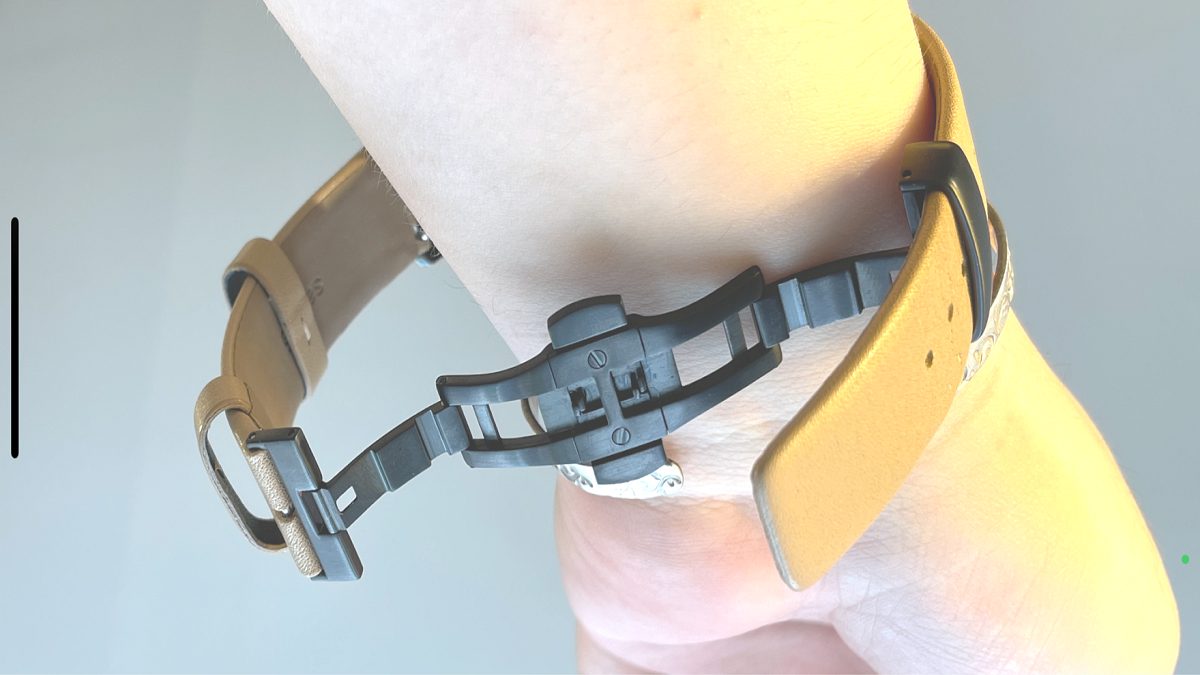 ディプロイメントとは直訳すると「展開」という意味があり、輪っかのように大きく開き、メタルブレスレットのような装着方法ができます。