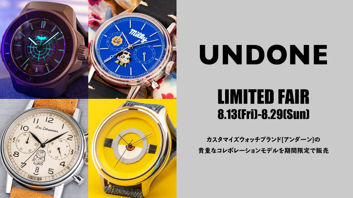普段は取り扱いのない香港発のカスタムウォッチブランド【UNDONE】アンダーンのコラボレーションウォッチ・リミテッドフェアをエイチエムエスウォッチストアの限られた店舗で行います!