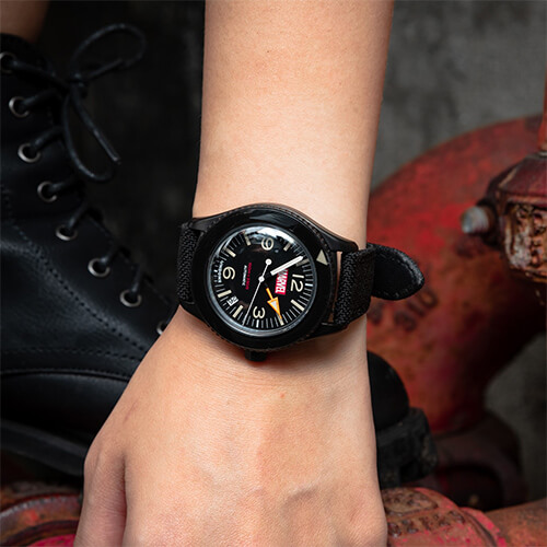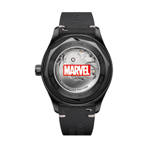 アメコミのかっこよさとポップさを残したカジュアルなデザイン。マーベルロゴと特徴的な針のスタイルで、普段使いできるデザイン性にこだわったモデル。機械式ムーブメントで10気圧防水と、高いスペックも魅力。