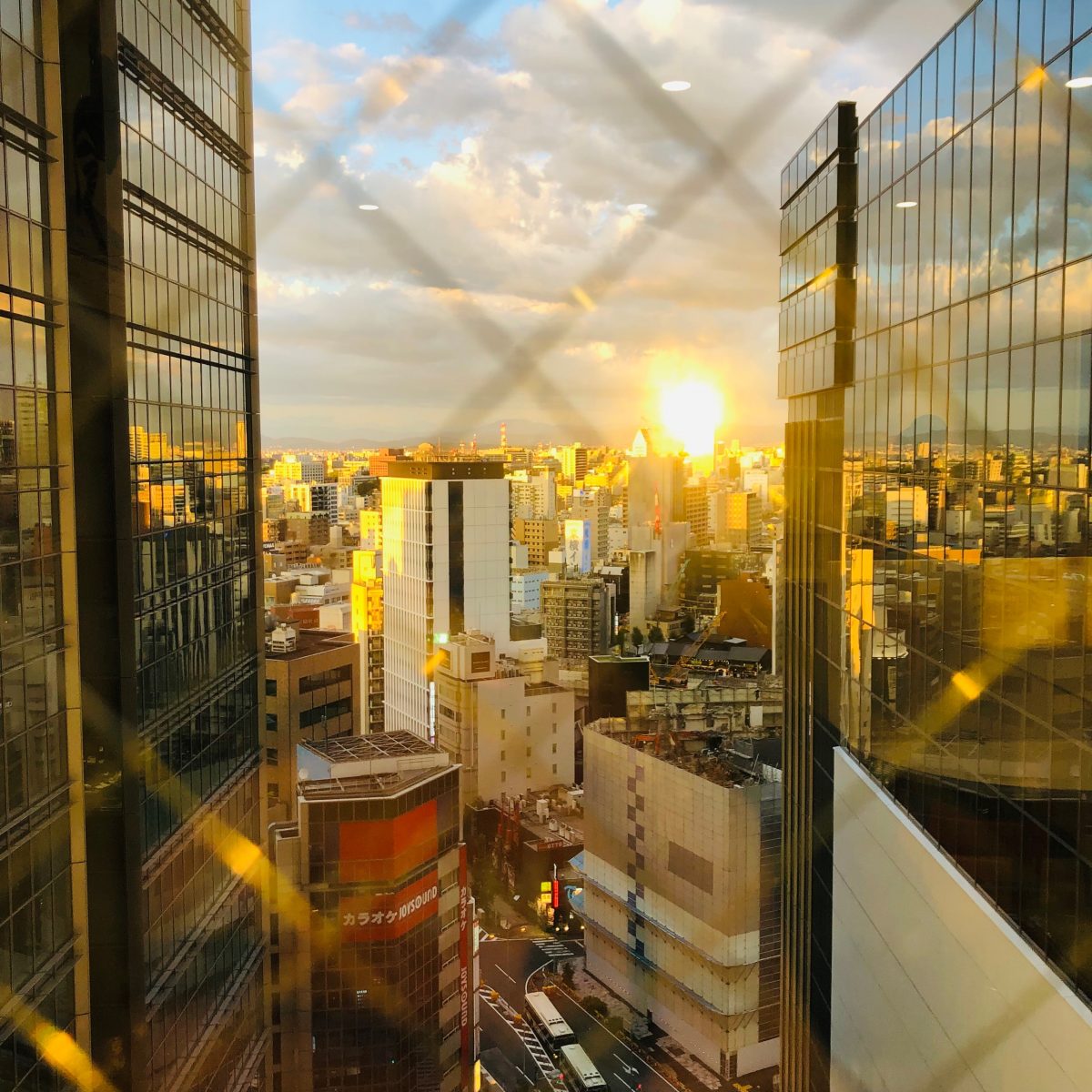 先日、出勤していた時、ゲートタワーモールの休憩室から夕焼けが綺麗だったので、写真を撮ってみたんです!