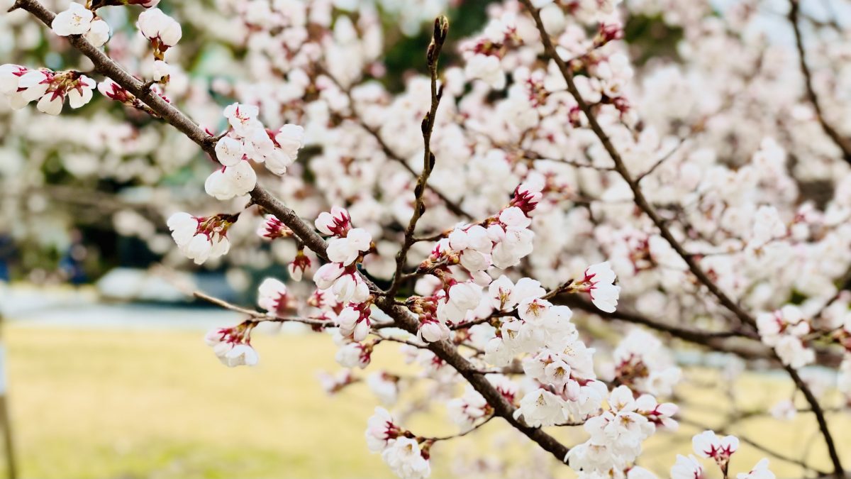 奇跡的に桜の木が花をつけていたのでパシャリ(笑)