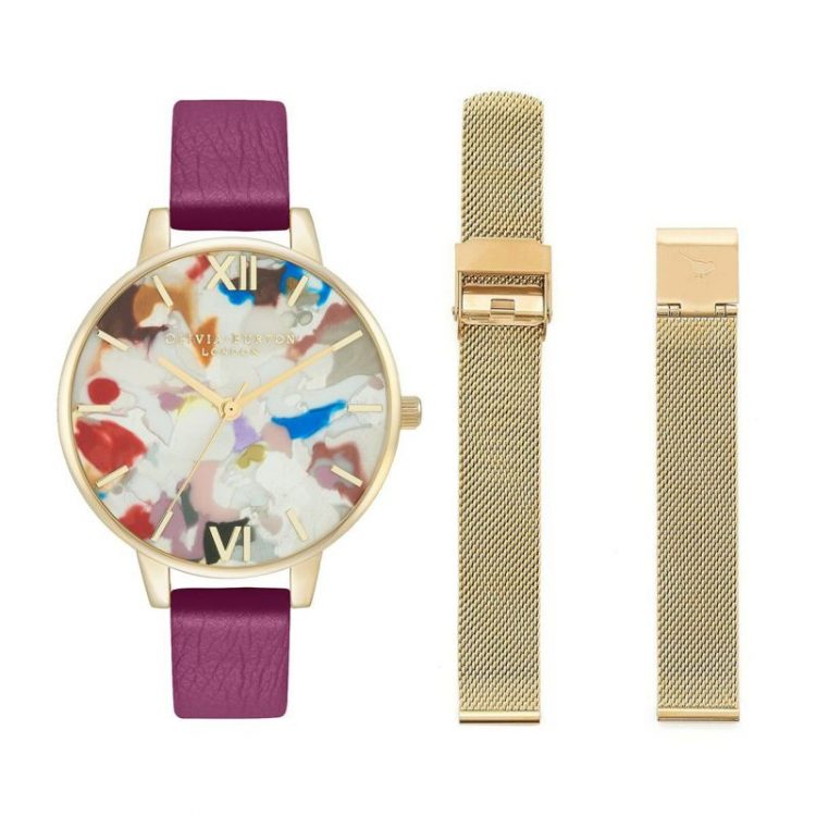 《品番:OBGSET153》【ギフトセット】ポップアート-デミエコカンフェティダイヤルオーキッド& ペールゴールドメッシュウォッチ&ストラップセット 価格:¥26,400(税込)