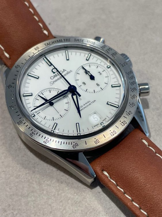 スピードマスターのこの2つも金額が10万くらい違うんですがなんでだろうと思って入ってきた商品を持ってみるとホワイトダイヤルのほうは驚くべき軽さ!!