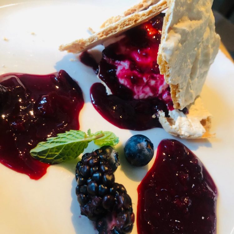 少し酸味のあるクリームチーズ系のババロアに、砂糖ベースの甘さを纏っている焼き菓子でサンドされていて一緒に食べると病みつきになるおいしさのスイーツでした。。。♡