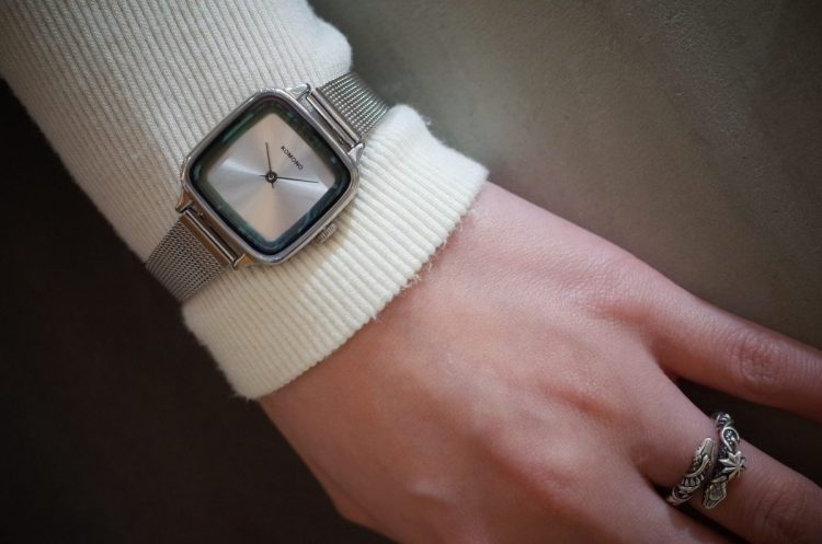 ケース幅は約25mm×31mmと小ぶりですので腕元を女性らしくかつシルバーの色味が凛とした雰囲気にしてくれます。