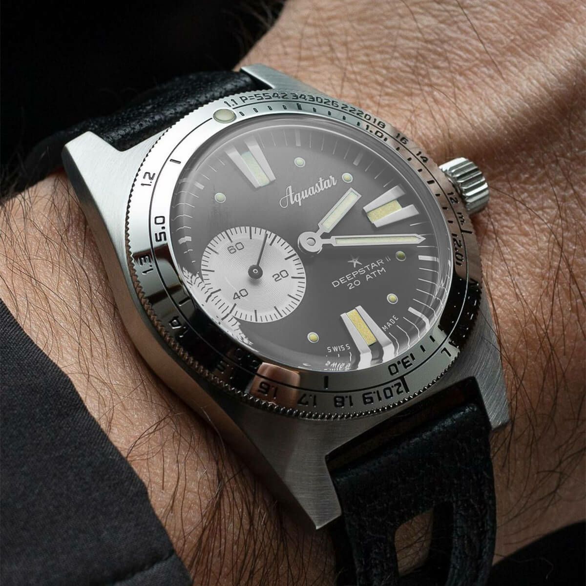 Sold out. 他の画像を見る AQUASTAR/アクアスター Aquastar Deepstar II vintage Black on stainless steel BOR bracelet ¥ 345,400 税込