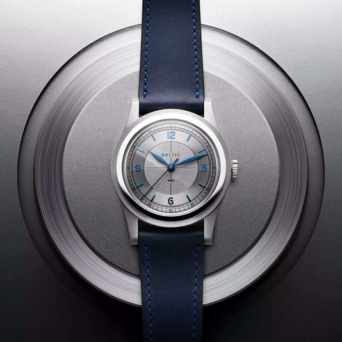 BALTIC / バルチック HMS 002 シルバー スケルトンケースバック ネイビーブルーレザーストラップ