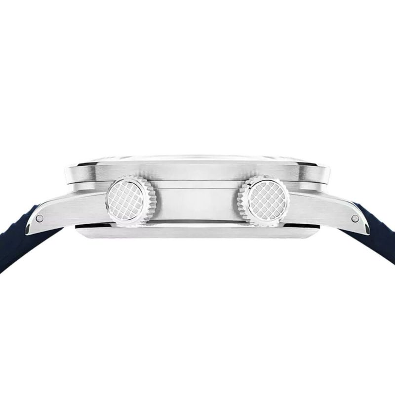 2021年3月に本国フランスで発売され、初回生産分300本が即日完売。時計業界を大いに沸かせた幻のモデルとなったが、このたび再生産し限られた店舗にて再販売されることが決定。別名コンプレッサーダイバーとも呼ばれるこのモデルは、1950年代にスイスのケースメーカーEPSA社が開発し、賛同を得た時計ブランドに供給することによって広く普及したデザイン。ケースにかかる水圧を利用し、水深が深くなるにつれて密閉度を高めて防水性を保つ仕組みとなっている。今回のモデルはコンプレッサーウォッチの象徴的な機能である双方向回転式インナーベゼルを採用。2時位置に配置されたリューズで調整ができるため不注意による操作のリスクを回避できる。また、ガラス内部にベゼルを設置することによって、文字盤全体の視認性が上がり同じケース径の時計でも存在感が増し、より手元で存在感を演出する。漆黒のブラックダイアルには、スーパールミノバを施したインデックスで、暗闇の中でも簡潔明瞭に時間を読み取る事が出来る。