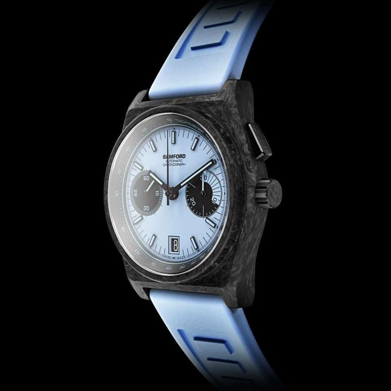 BAMFORD / バンフォード B347 ブラック カーボン アクアブルー クロノグラフ ラバー ストラップ