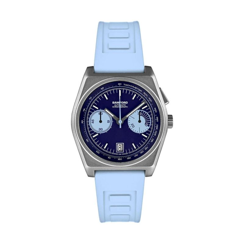BAMFORD / バンフォード B347 シルバー チタニウム ネイビー ブルー アクアブルー クロノグラフ ラバー ストラップ