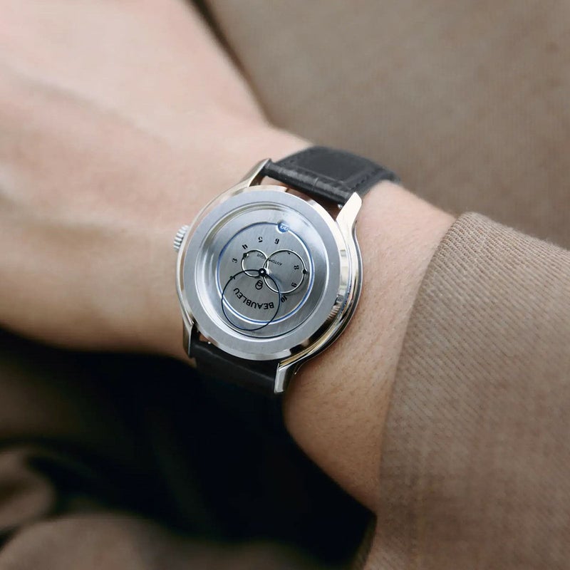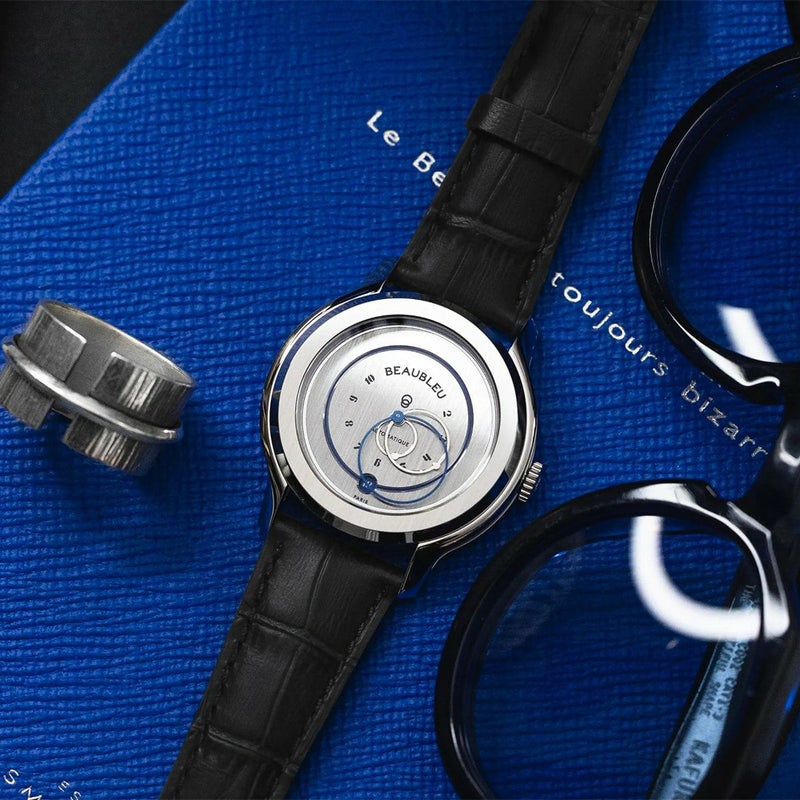2017年パリで誕生した独立系ブランド BEAUBLEU。青の美学と「美しいものは奇妙である」という哲学を軸に、円形針など革新的デザインを提案。物語性と芸術性を宿した、時間を“体験”として解釈する新進マイクロブランドです。