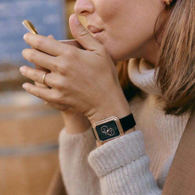 セミオクタゴンのシルエットを描くローズゴールドケースは、柔らかなカーブを引き立てるように、ポリッシュとブラッシュを巧みに切り替え、輪郭に繊細な陰影と洗練を与えています。