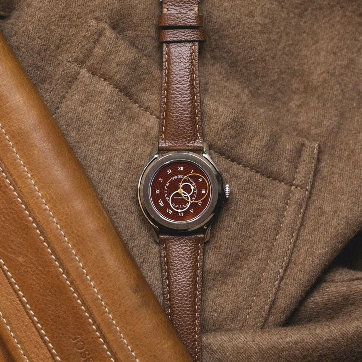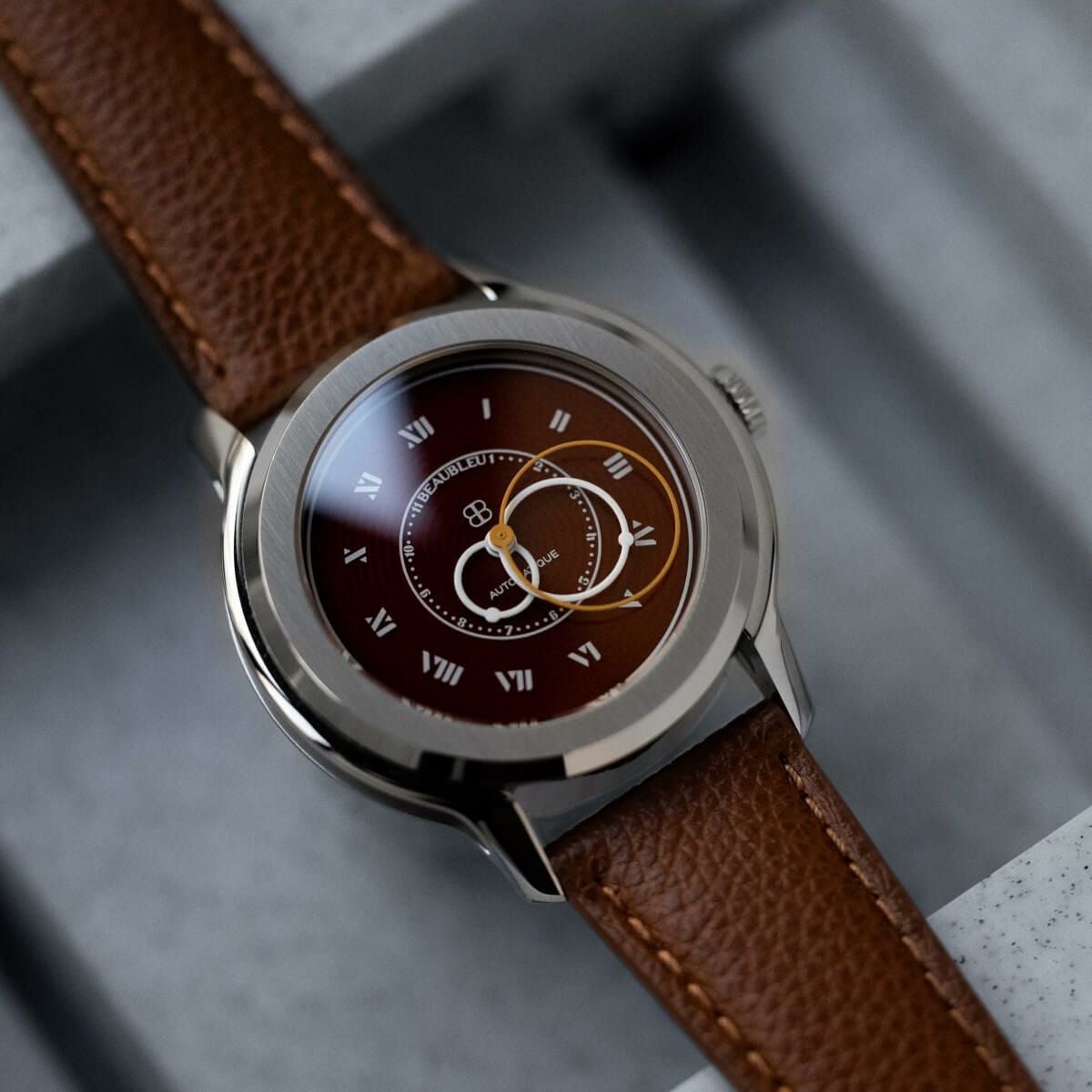 Sold out. 他の画像を見る BEAUBLEU / ボーブルー VITRUVE ORIGINE COGNAC ヴィトルーヴ・オリジン・コニャック コニャックレザーストラップ ¥ 121,000 税込