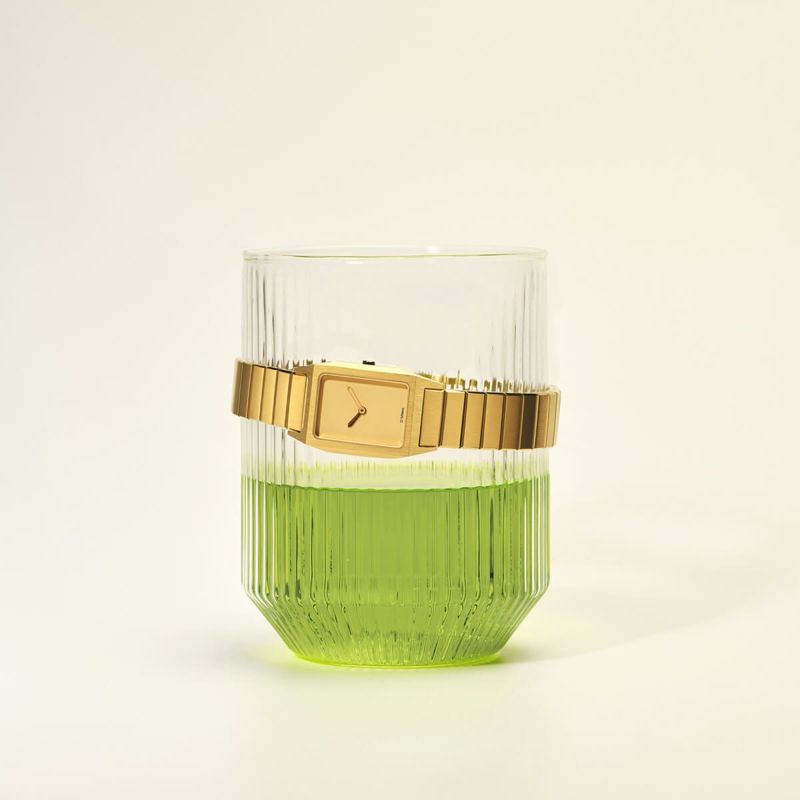 新たなフォルム、新たなDNA、新たな世界へ。Aura SS25は、ヴィンテージの長方形デザインが持つタイムレスなエレガンスに、鮮やかでモダンなスチール仕上げを加え、洗練された意外性を演出するアクセサリーとして誕生しました。