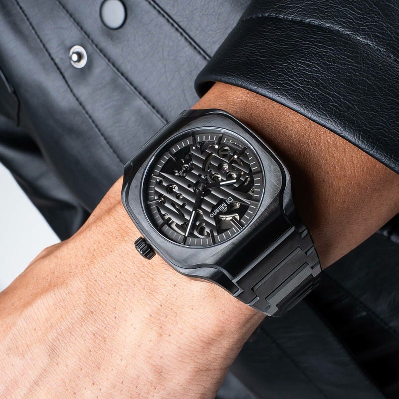 ヴィンテージデザインから直接インスピレーションを受け、D1 MILANOはクラシックなスクエアケースと、大胆なスケルトンダイヤルを融合。