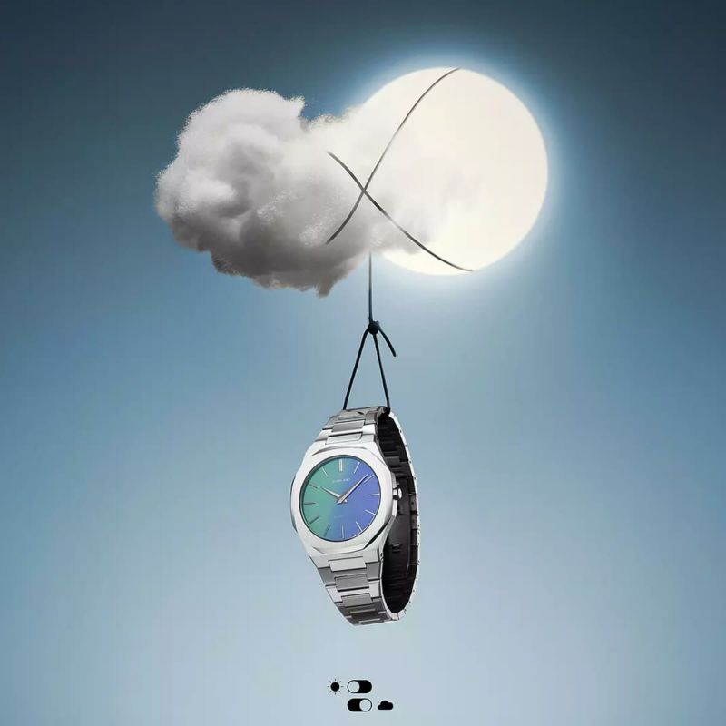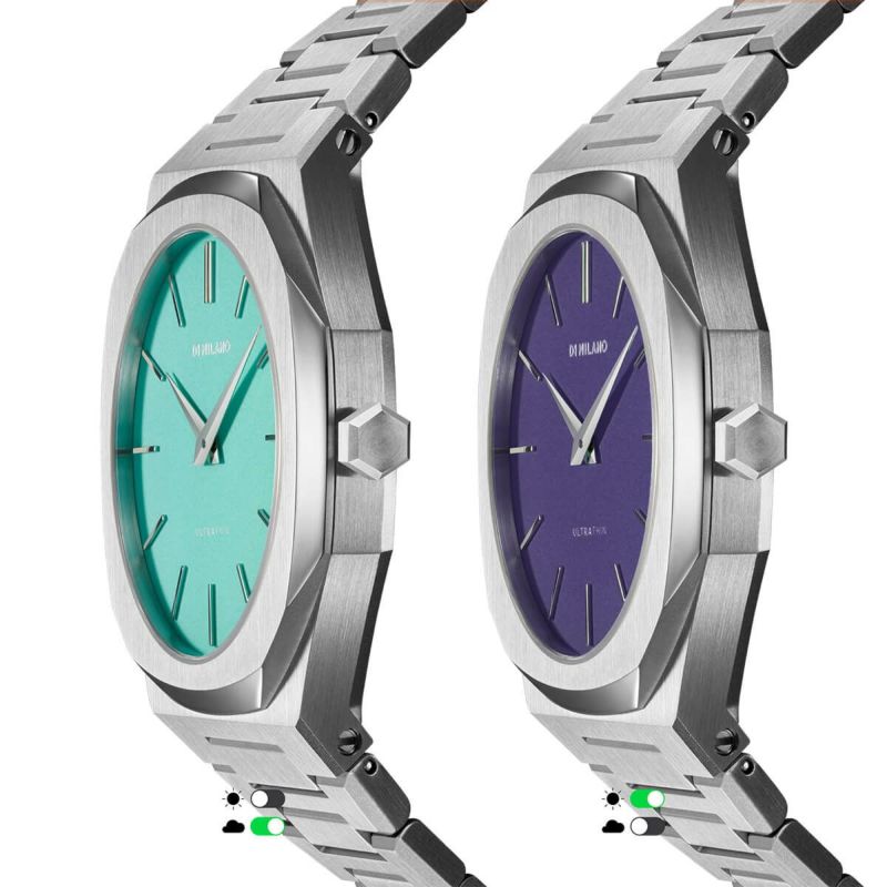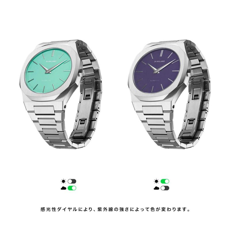 UVの強さによって色が変化するフォトセンシティブ(感光)ダイヤルを採用したこの時計は、素材と加工技術の探求から生まれた、まったく新しく、予想外のデザインアクセサリーです。