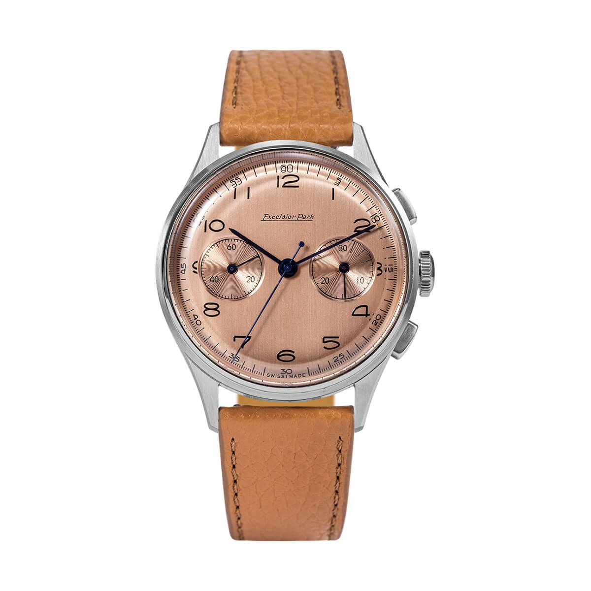 Excelsior Park / エクセルシオパークは1866年にスイスのサン ・ ティミエで創業したクロノグラフ専門メーカー。名だたるブランドのムーブメントを製造していた経歴もあり、耐久性の高いムーブメントが搭載された当時のオリジナルモデルは、いまだ多くの時計マニアから支持を受けて絶大的な人気を誇っている。しかし、クオーツショックの煽りを受け、惜しまれつつも1度ブランドの歴史に幕を閉じた。知る人ぞ知るブランドになってしまったが、2022年、昨今復活を遂げたスイス発の腕時計ブランド「Nivada Grenchen/ニバダ ・ グレンヒェン」復活の立役者でもあるギヨーム・ライデ氏と時計業界のインサイダーで構成されたといわれるユリウスグループによって再びその心臓に血を巡らせ動き始めた 。