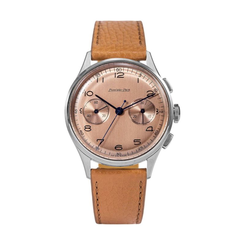 Excelsior Park / エクセルシオパークは1866年にスイスのサン・ティミエで創業したクロノグラフ専門メーカー。名だたるブランドのムーブメントを製造していた経歴もあり、耐久性の高いムーブメントが搭載された当時のオリジナルモデルは、いまだ多くの時計マニアから支持を受けて絶大的な人気を誇っている。しかし、クオーツショックの煽りを受け、惜しまれつつも1度ブランドの歴史に幕を閉じた。知る人ぞ知るブランドになってしまったが、2022年、昨今復活を遂げたスイス発の腕時計ブランド「Nivada Grenchen/ニバダ・グレンヒェン」復活の立役者でもあるギヨーム・ライデ氏と時計業界のインサイダーで構成されたといわれるユリウスグループによって再びその心臓に血を巡らせ動き始めた。