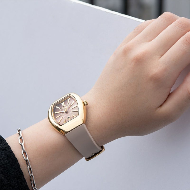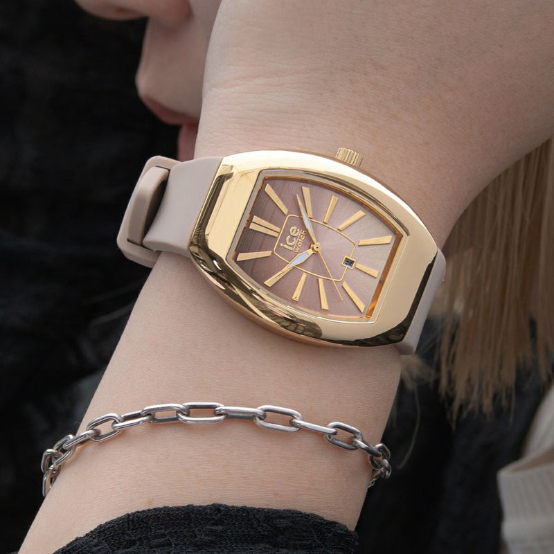 「ICE Boliday Warm Taupe」は、柔らかく温もりのあるウォームトープカラーに、華やかなゴールドダイヤルが映えるフェミニンなタイムピース。