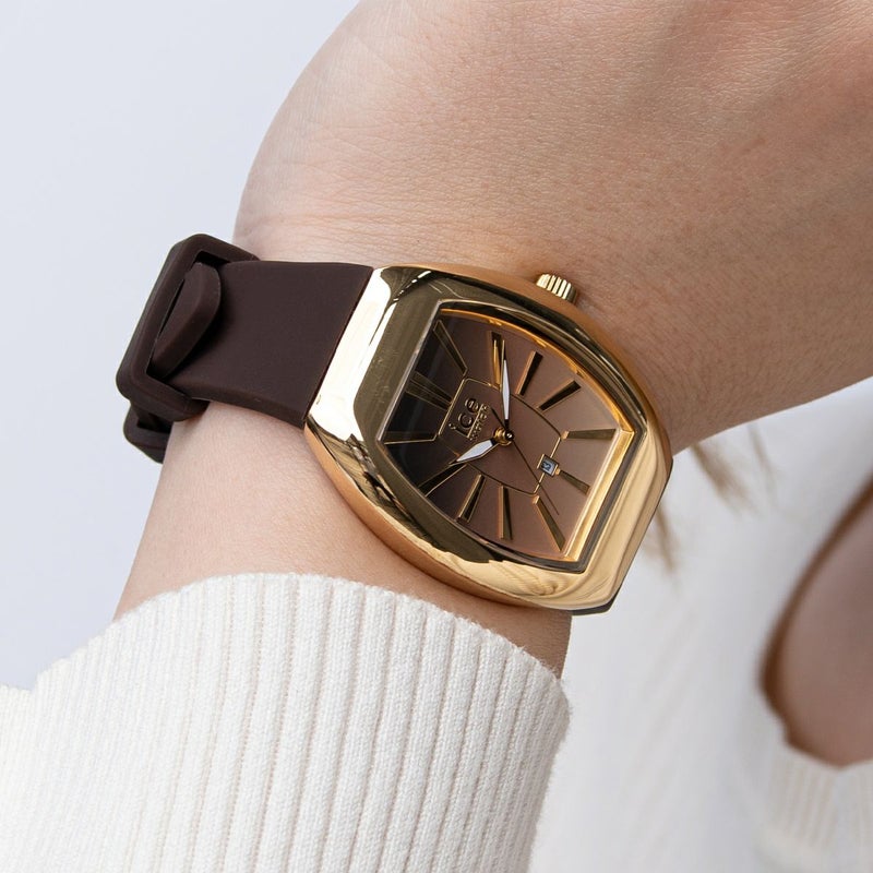 「ICE Boliday Chocolate」は、まろやかで深みのあるチョコレートブラウンが魅力の、上品でフェミニンなメタリックウォッチです。