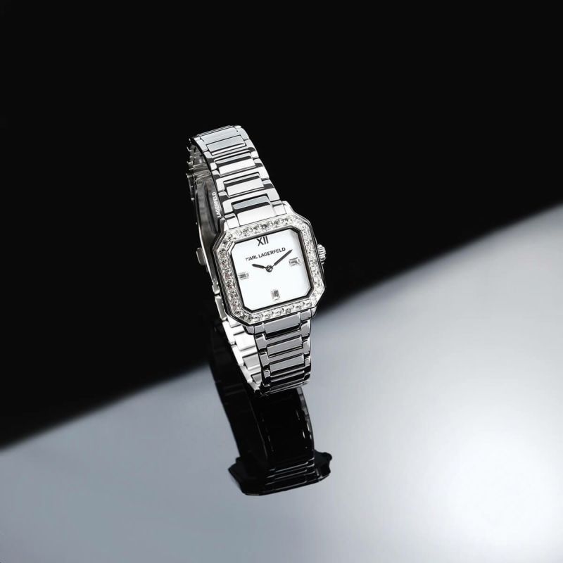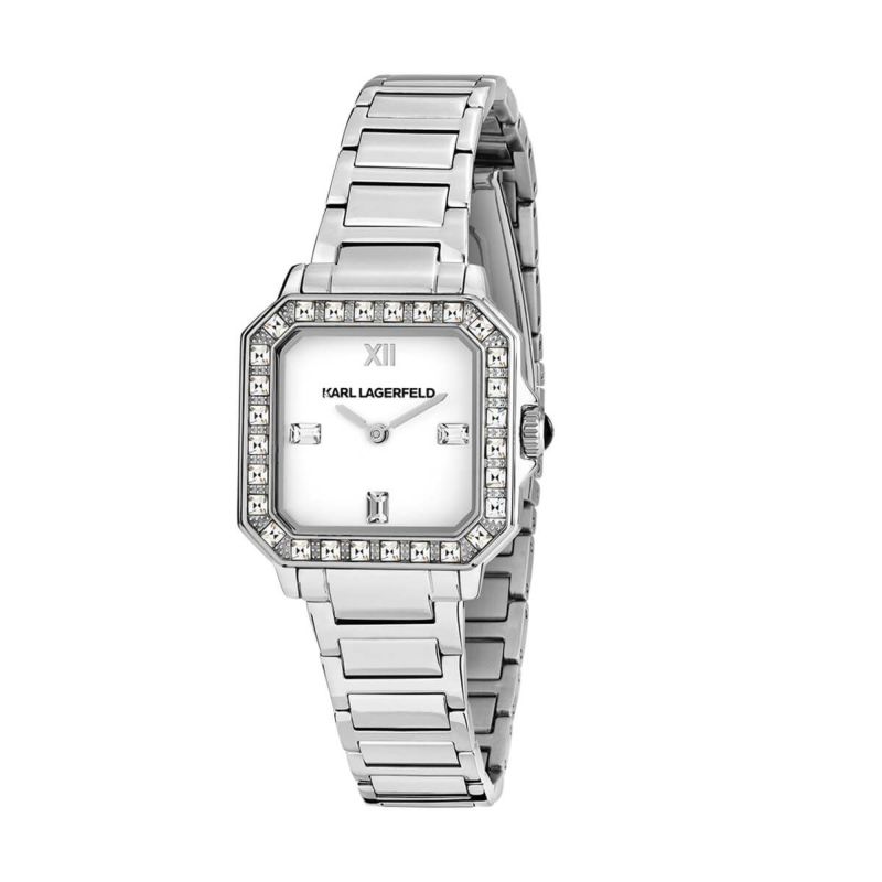 KARL LAGERFELD / カール・ラガーフェルド スクエア クラシック - ホワイト クリスタル ダイヤル シルバー ブレスレット