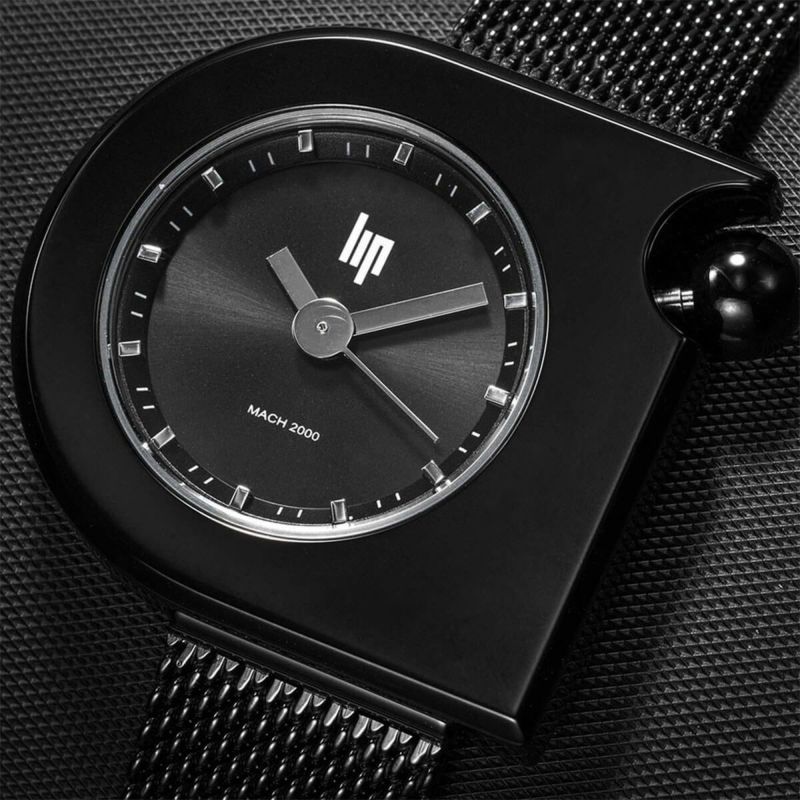 シンプルでありながら洗練された魅力を放つLIP Mach 2000 Mini Moonのシックなバージョン。調整可能なブラックのミラネーゼメッシュブレスレットを備え、オールブラックのデザインにシルバーの針が映える、エレガントなジュエリーウォッチです。