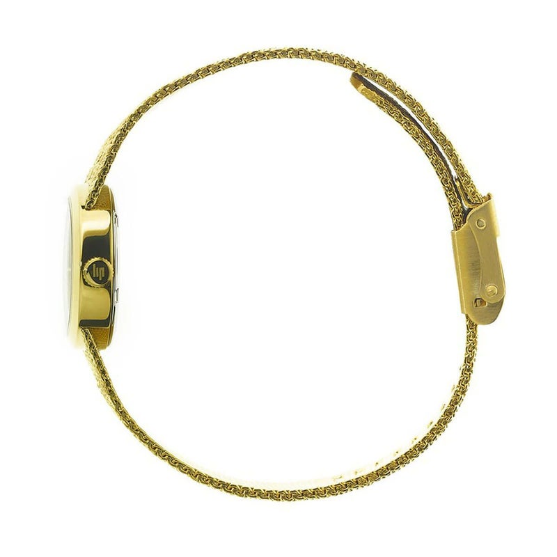 新たに22mmゴールドケースへとサイズアップし、視認性を向上させたLIP Henrietteが登場。ポリッシュメッシュのゴールドブレスレットが、これまでのモデルよりもさらにヴィンテージ感を引き立て、洗練された美しさを演出します。