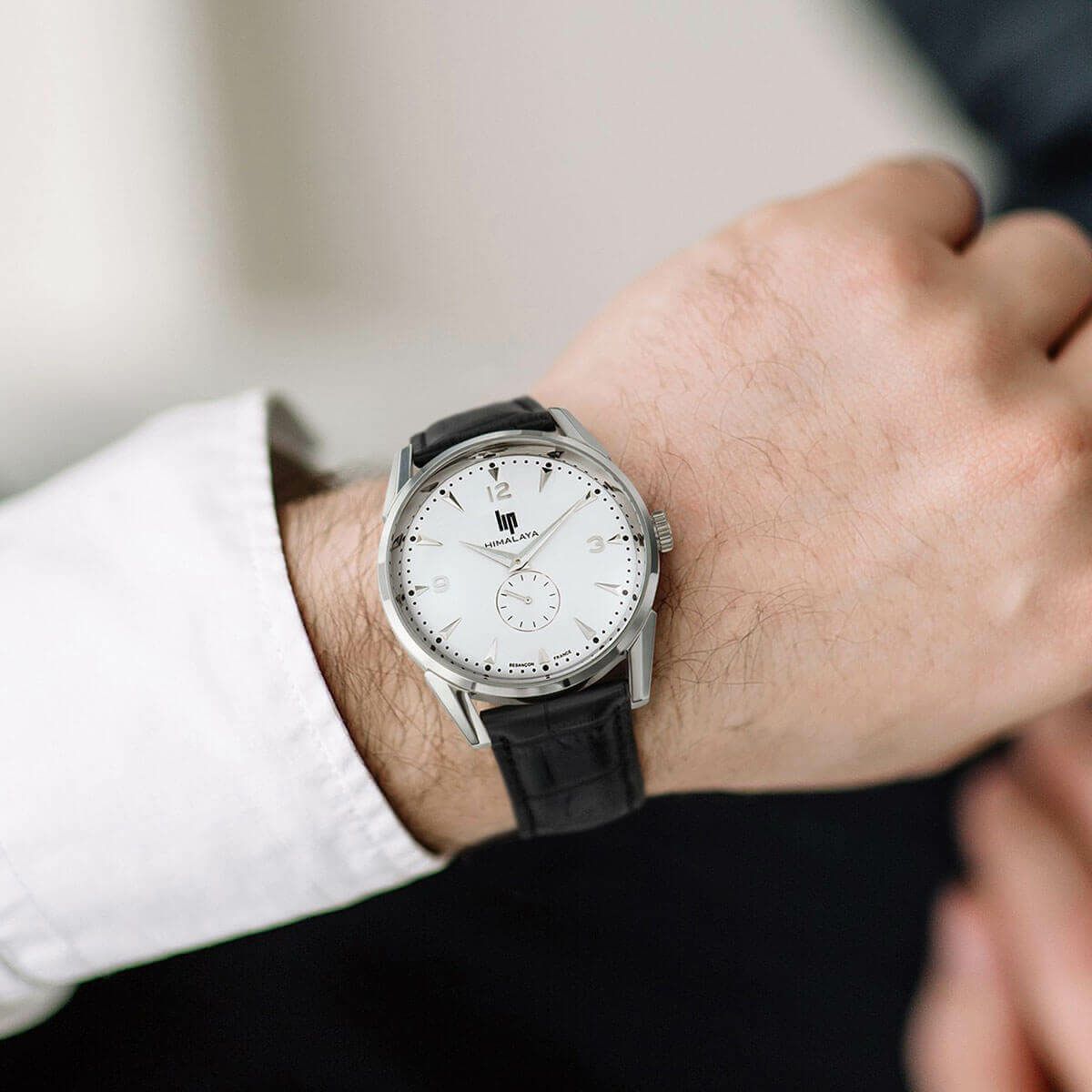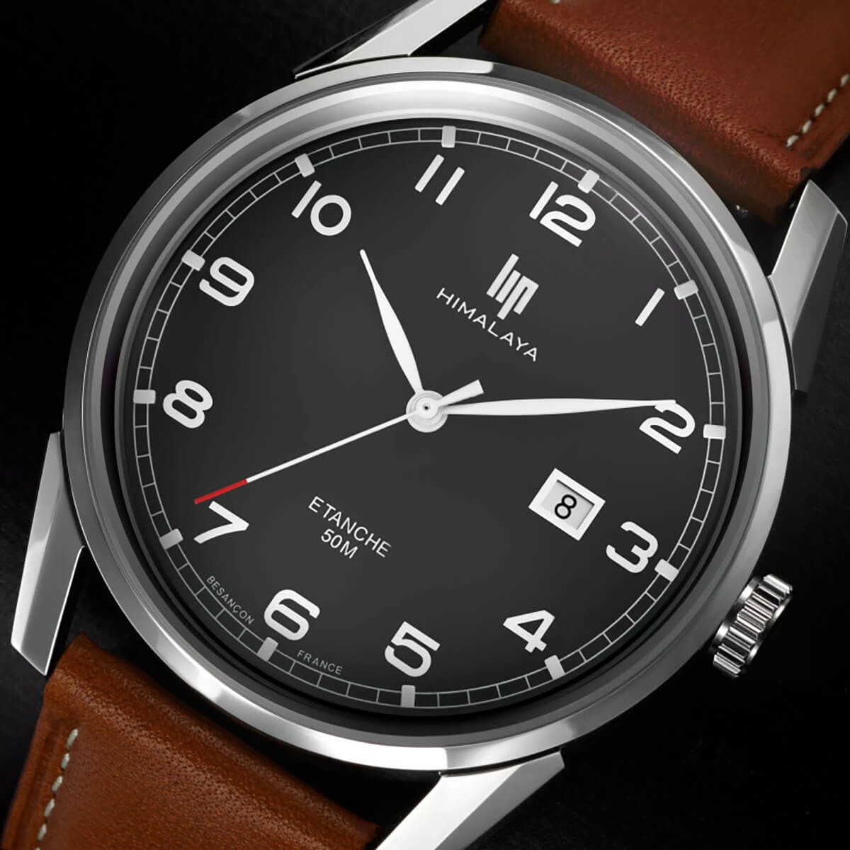 LIP / リップ ヒマラヤ クラシック 40mm デイデイト シルバー ブラックダイヤル ブラックレザーストラップ