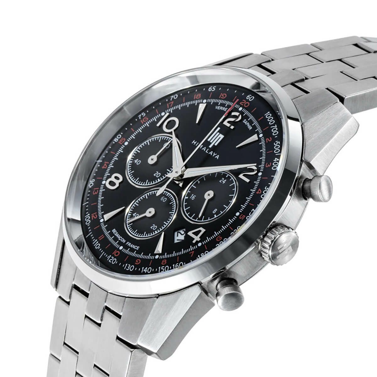LIP Himalaya Chronograph ― ブラックダイヤルとステンレスブレスが際立つ、スポーティでエレガントなタイムピース。
