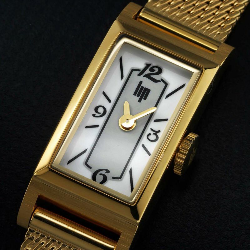 ラグジュアリーな一面を主張するこのモデルに、金メッキのミラネーゼメッシュブレスレットを適応させた、間違いないモデルです。小ぶりなサイズで、明るく端正なこの時計は、LIPのフェミニンな世界を表現しています。