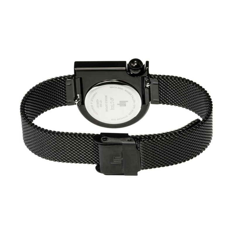 シンプルでありながら洗練された魅力を放つLIP Mach 2000 Mini Moonのシックなバージョン。調整可能なブラックのミラネーゼメッシュブレスレットを備え、オールブラックのデザインにシルバーの針が映える、エレガントなジュエリーウォッチです。