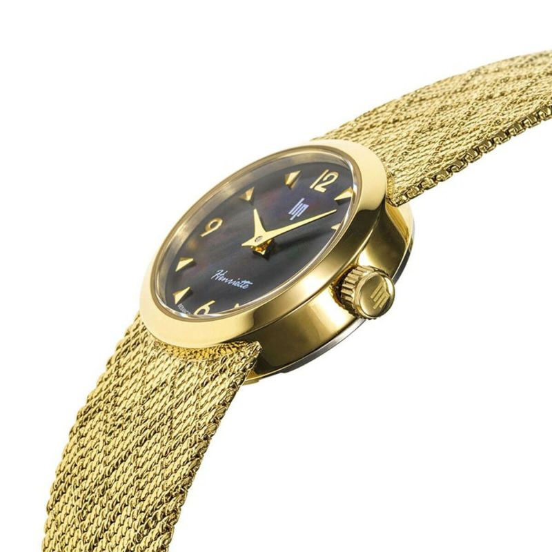 新たに22mmゴールドケースへとサイズアップし、視認性を向上させたLIP Henrietteが登場。クラシックな魅力を纏ったポリッシュメッシュのゴールドブレスレットは、これまでのモデルよりもさらにヴィンテージ感を引き立て、エレガントな装いを完成させます。
