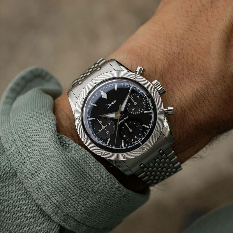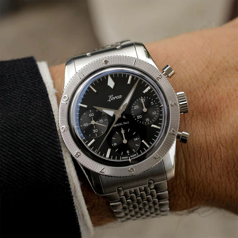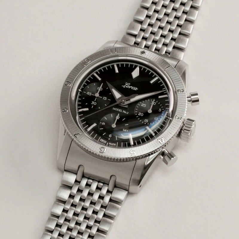 Lorca Watches / ロルカ ウォッチ モデル No.2 クロノグラフ ブラック ステンレススチール ブレスレット