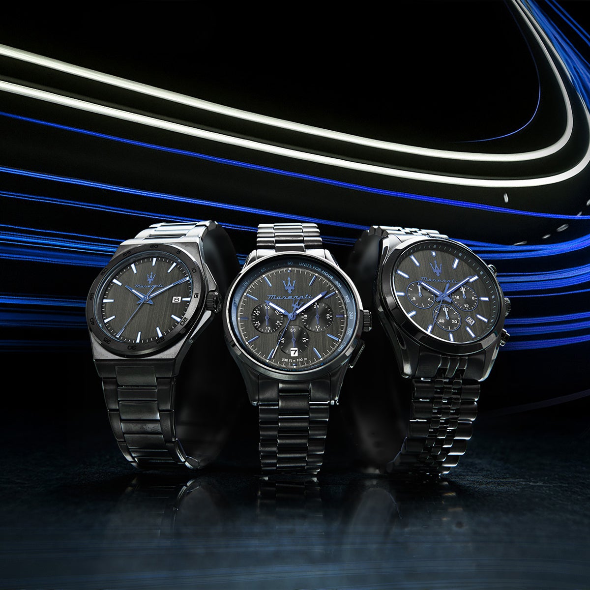 1914年ボローニャで創業した Maserati は、力強さと優雅さを象徴する「トライデント」を掲げる名門ブランド。その精神はウォッチコレクションにも息づき、精緻なデザインと存在感を併せ持つアイテムは持つ人の情熱と個性を際立たせます。