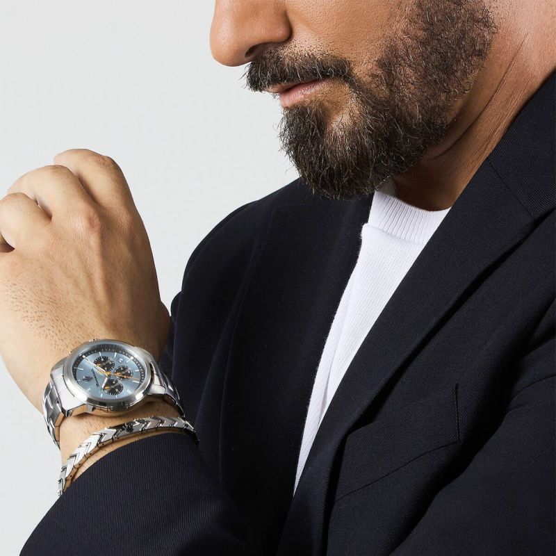 時計とブレスレットを組み合わせたスペシャルパックが登場。 42mmクロノグラフの「Successo」はブルーダイヤルとシルバーブレスレットにブラックアクセントのブレスレットをセット。ステンレススチールケースとミネラルクリスタル風防を採用し、防水・日付機能を備えた上質なタイムピースで、ギフトにも最適な特別感を演出します。
