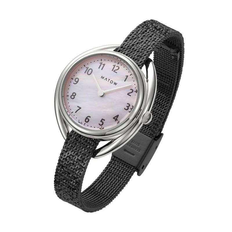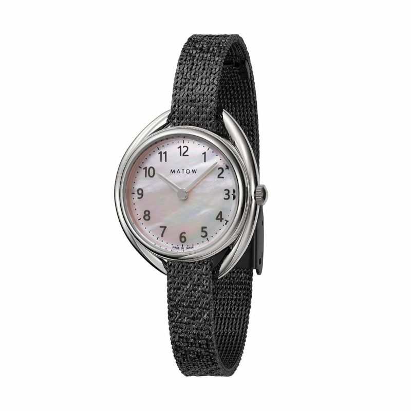 MATOW / マトウ Shiki ラウンド シルバー 黒花 / ブラックメッシュ / ソーラー時計
