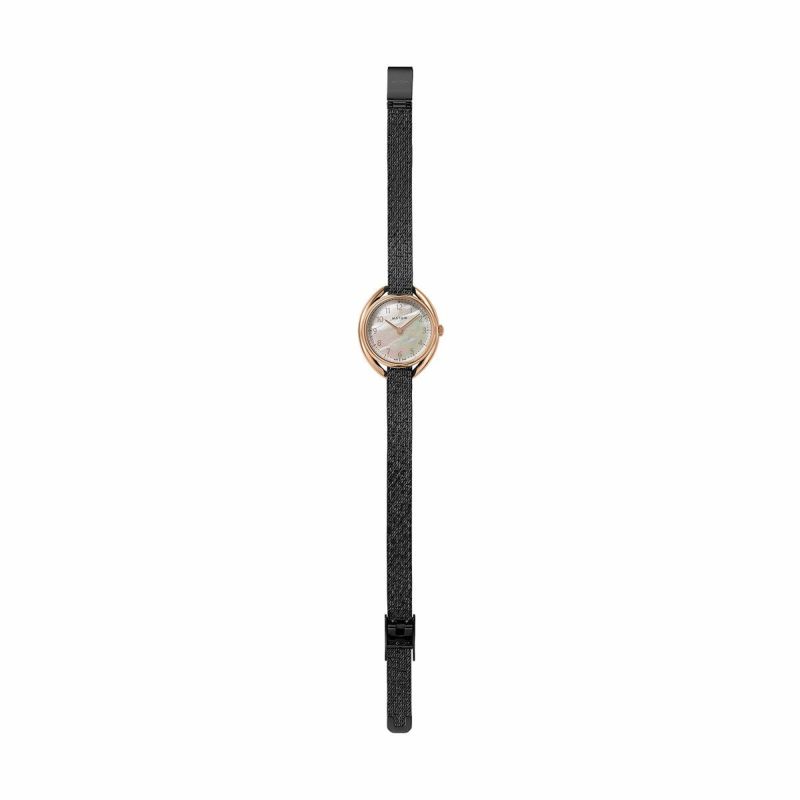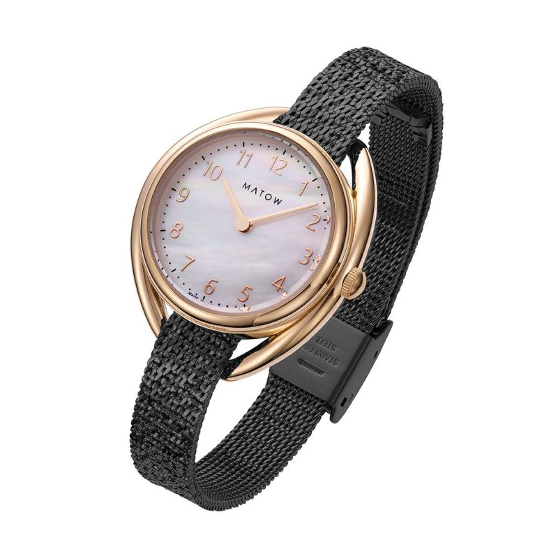 MATOW / マトウ Shiki ラウンド ローズゴールド 黒花 ブラックメッシュ ソーラー時計
