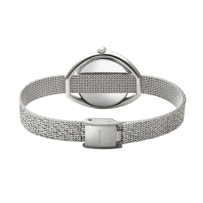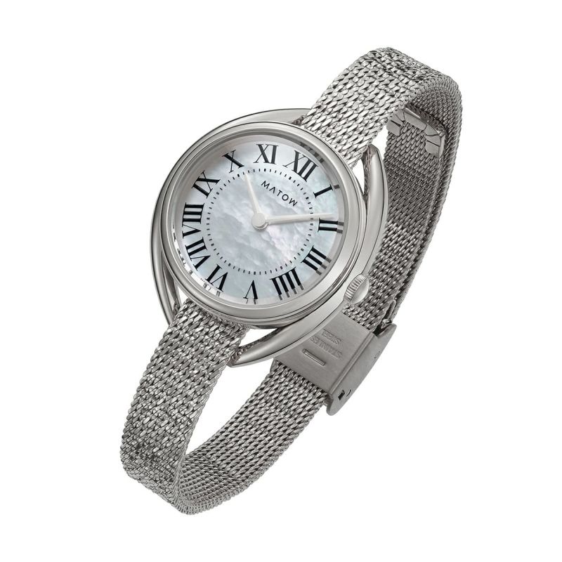 華麗に絡み合うきめの細かい8mm幅のメッシュベルトは、煌びやかで美しいうつろいを纏う。着飾るときのためのものとして生まれた飾り花を纏うことで、全ての女性を手元から輝かせる。