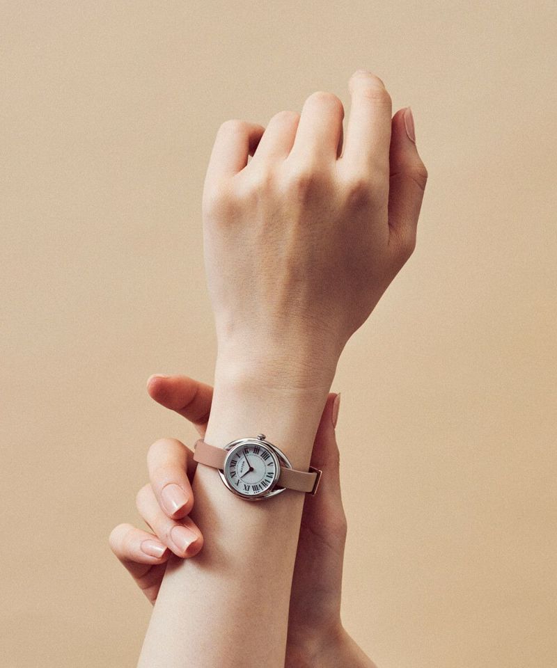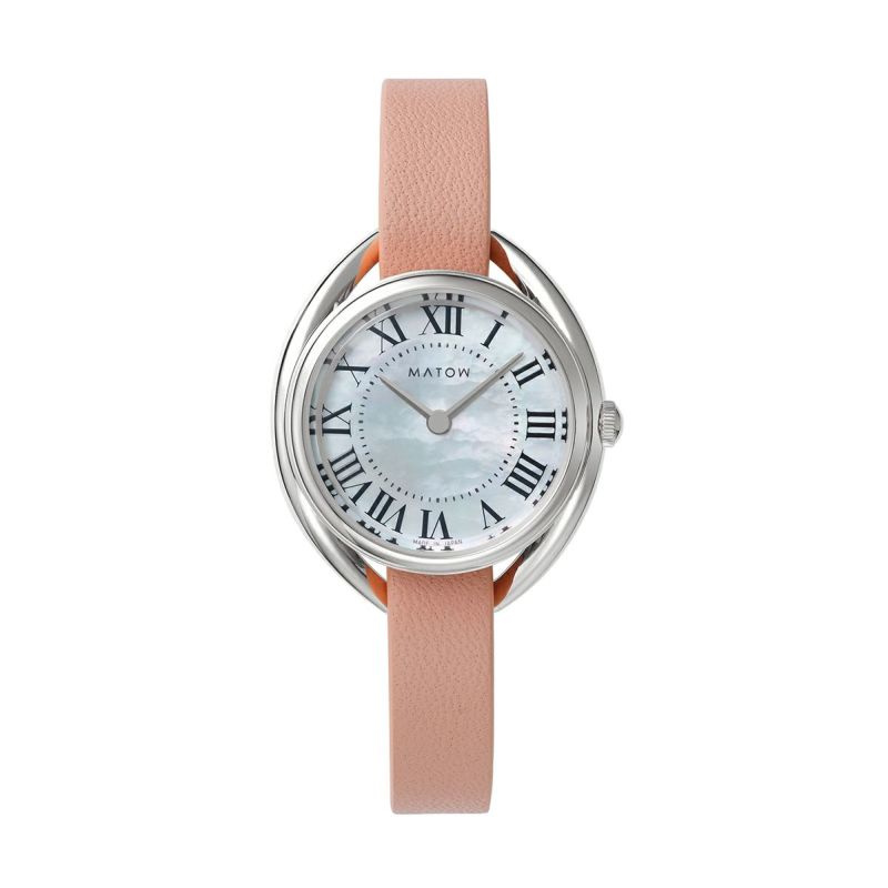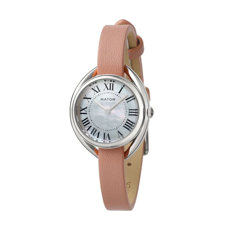 文字盤にマザーオブパールをあしらいインデックス部分をローマ数字にアップデートした『白亜(はくあ)』。白亜は優しい乳白色のような 白色のことで、その名前のとおり白濁色のマザーオブパールの文字盤にローマ数字を合わせた、シンプルで大人な雰囲気の腕時計。 ムーブメントは従来と同じくソーラーバッテリーを採用し、太陽光や蛍光灯で充電できるので電池交換は不要。