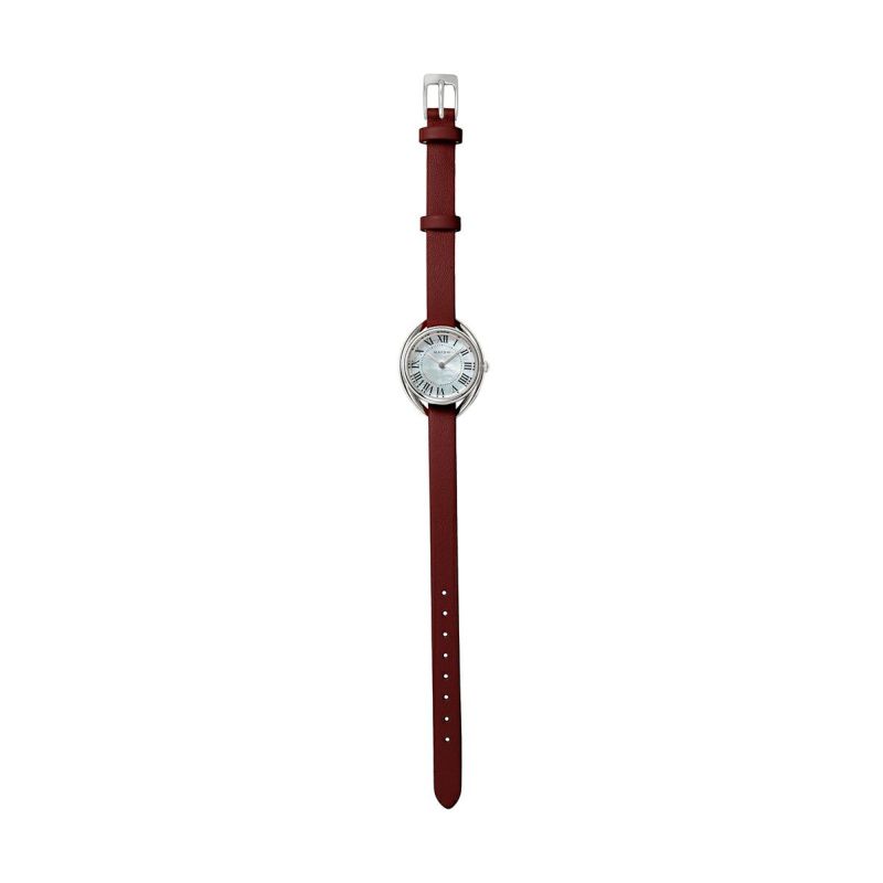 文字盤にマザーオブパールをあしらいインデックス部分をローマ数字にアップデートした『白亜(はくあ)』。白亜は優しい乳白色のような 白色のことで、その名前のとおり白濁色のマザーオブパールの文字盤にローマ数字を合わせた、シンプルで大人な雰囲気の腕時計。 ムーブメントは従来と同じくソーラーバッテリーを採用し、太陽光や蛍光灯で充電できるので電池交換は不要。